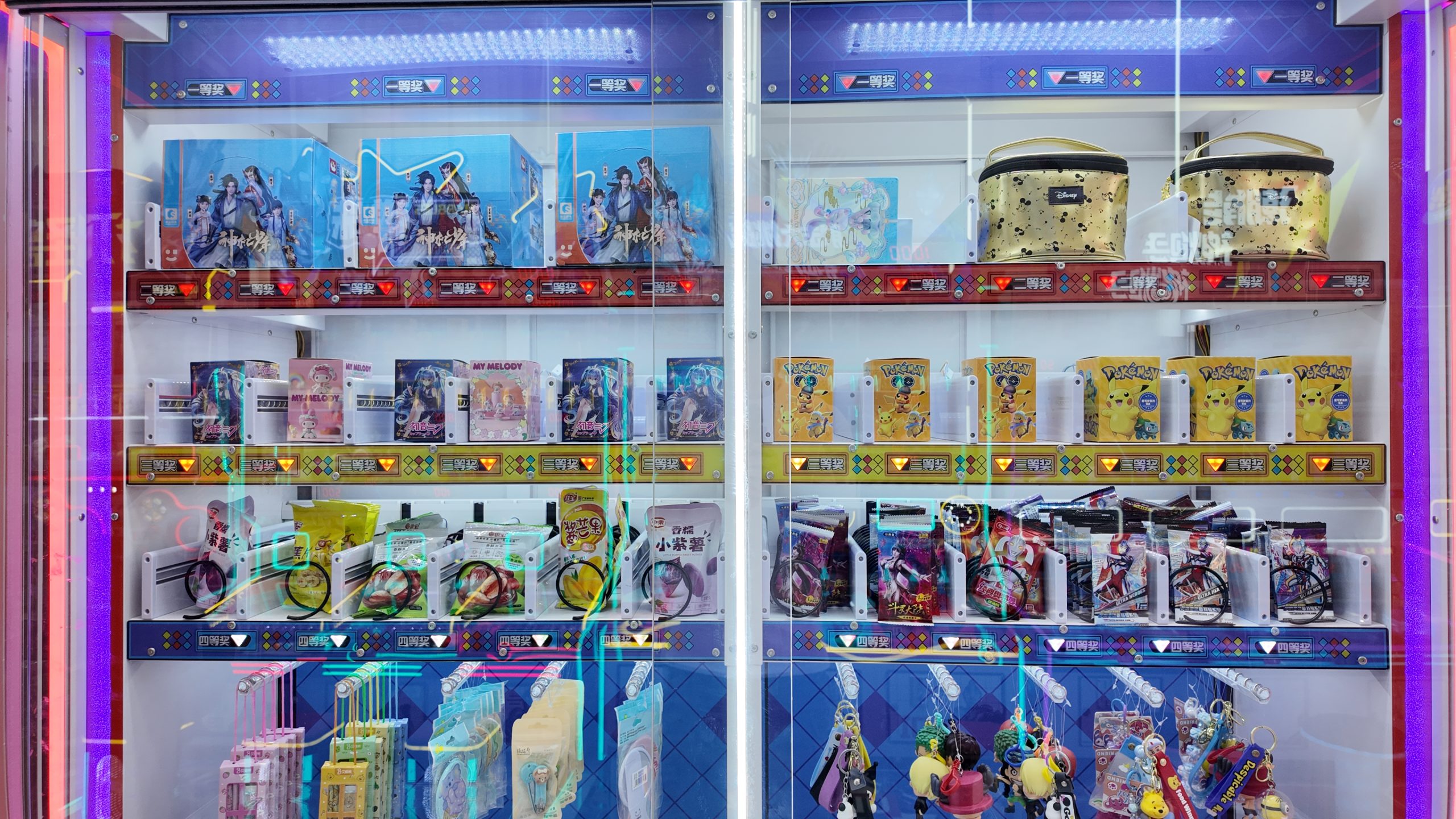 This machine is a two-player pinball game machine with a natural probability gameplay. It is fair and fun, offering 4 levels of rich prizes. There are many choices for selecting the gifts, such as trendy toy pendants, figurines, limited edition boxes, ornaments, cards, and more. The display of the gifts is very intuitive, which is highly attractive to players and has high revenue.